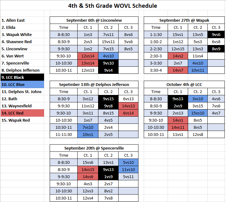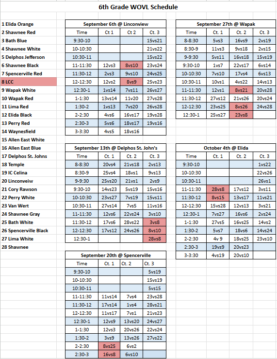 Volleyball Schedules